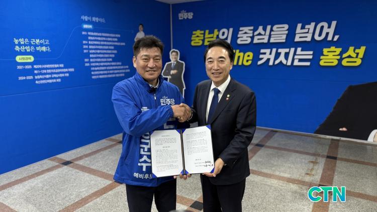 [Á¤Ä¡/CTN]ÇѼºÁø ±âÀÚ = ´õºÒ¾î¹ÎÁÖ´ç ¼Õ¼¼Èñ È«¼º±º¼ö ¿¹ºñÈĺ¸¿Í ¹Ú¼öÇö Ãæ³²µµÁö»ç °æ¼±È帰¡ Áö³ 3ÀÏ ¿ÀÀü 9½Ã, ¼Õ¼¼Èñ ¿¹ºñÈĺ¸ ¼±°Å»ç¹«¼Ò¿¡¼ È«¼º±ºÀÇ ¹Ì·¡ ºñÀü °øÀ¯¿Í Á¤Ã¥ ½ÇÇöÀ» À§ÇÑ 'Á¤Ã¥¿¬´ë Çù¾à'À» ü°áÇß´Ù.