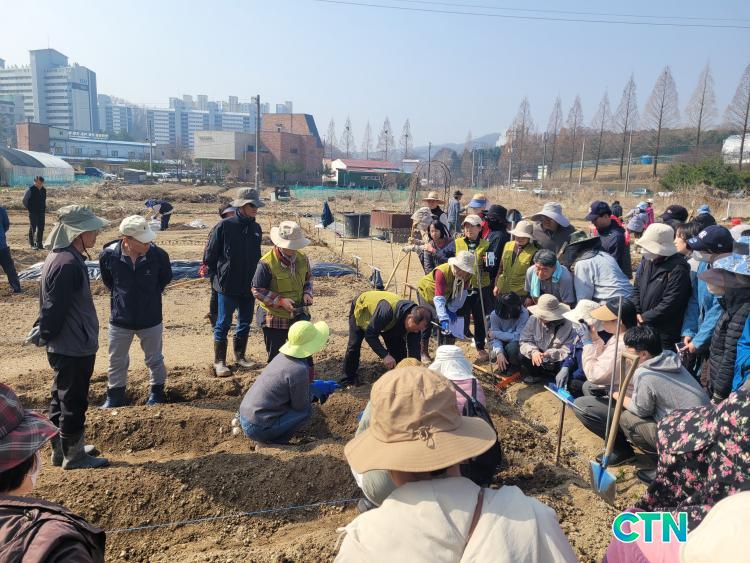 À̹ø ±³À°Àº ¿ÃÇØ ¼±¹ßµÈ 100¸íÀÇ ±³À°»ýÀÌ Âü¿©ÇÑ °¡¿îµ¥ ÁøÇàµÆ´Ù. Âü°¡ÀÚµéÀº °¢ÀÚÀÇ °³º° ÅԹ翡¼ ¾¾¾Ñ°ú ¸ðÁ¾ÀÌ °Ç°ÇÏ°Ô ÀÚ¶ö ¼ö ÀÖ´Â ±âÃÊ Åä´ë¸¦ ´Û¾Ò´Ù. ÈëÀ» ½×¾Æ ¿Ã·Á À̶ûÀ» ¸¸µå´Â µÎµÏ Á¶¼º ÀÛ¾÷°ú Áö¿ÂÀ» À¯ÁöÇϰí ÀâÃÊ ¹ß»ýÀ» ¾ïÁ¦Çϱâ À§ÇÑ ¸ÖĪ ºñ´Ò ¾º¿ì±â ÀÛ¾÷À» ¸¶Ä£ µÚ, ´ëÇ¥ÀûÀÎ º½ ÀÛ¹°ÀÎ °¨ÀÚ¿Í ¿ÏµÎ¸¦ Á÷Á¢ ½É¾îº¸´Â ½Ç½À ½Ã°£À» °¡Á³´Ù.