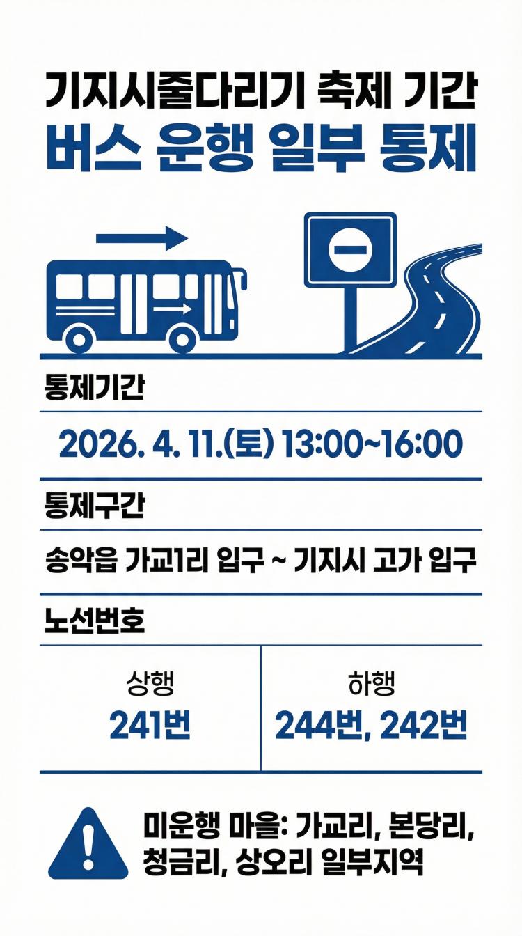 À̹ø ÅëÁ¦´Â 4¿ù 11ÀÏ ¿ÀÈÄ 1½ÃºÎÅÍ 4½Ã±îÁö 3½Ã°£ µ¿¾È ¼Û¾ÇÀ¾ °¡±³1¸® ÀÔ±¸~±âÁö½Ã °í°¡ ÀÔ±¸ ±¸°£¿¡¼ ½Ç½ÃÇÑ´Ù. ÇØ´ç ½Ã°£ µ¿¾È ½Ã³»¹ö½º »óÇà 241¹ø, ÇÏÇà 244¹ø, 242¹ø ³ë¼±Àº ÇØ´ç ±¸°£À» ¿ìȸ ¿îÇàÇÑ´Ù.