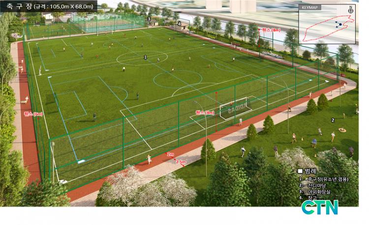 ƯÈ÷ ÀÌ °¡¿îµ¥ °¡·Î 105m, ¼¼·Î 68mÀÇ ±¹Á¦ ±Ô°ÝÀ» °®Ãá Ã౸ÀåÀÌ Æ÷ÇԵŠÀÖ¾î »ýȰ Ã౸ µ¿È£Àΰú ÁֹεéÀÇ ±â´ë°¡ ÇÑÃþ Ä¿Áö°í ÀÖ´Ù.