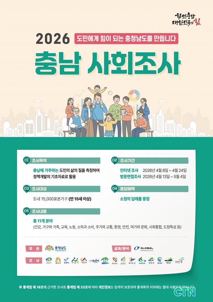 [õ¾È/CTN] °Çö¼ö ±âÀÚ = õ¾È½Ã´Â ½Ã¹ÎµéÀÇ »îÀÇ Áú°ú »çȸÀû »óŸ¦ ¸é¹ÐÈ÷ ÆÄ¾ÇÇØ Áö¿ª ¸ÂÃãÇü Á¤Ã¥À» ¼ö¸³Çϱâ À§ÇÑ ±âÃÊ ÀÚ·á·Î Ȱ¿ëµÉ ¡®2026 Ãæ³² »çȸÁ¶»ç¡¯¸¦ ³»´Þ 4ÀϱîÁö ½Ç½ÃÇÑ´Ù°í 8ÀÏ ¹àÇû´Ù. À̹ø Á¶»ç´Â Áö¿ª »çȸÀÇ º¯È¸¦ ¿¹ÃøÇÏ°í ½Ã¹ÎÀÇ ÁÖ°üÀû ÁöÇ¥¸¦ °´°üÈÇÏ¿© ÇàÁ¤ ¼ºñ½ºÀÇ ÁúÀ» ³ôÀÌ´Â µ¥ ¸ñÀûÀ» µÐ ±¹°¡½ÂÀÎ ÀϹÝÅë°è´Ù.