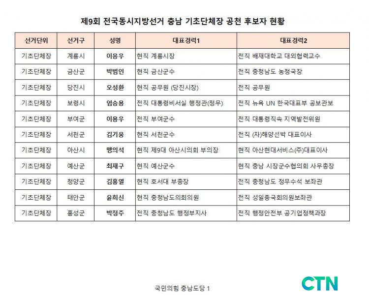 [Á¤Ä¡/CTN]ÇѼºÁø ±âÀÚ = ±¹¹ÎÀÇÈû Ãæ³²µµ´ç °øÃµ°ü¸®À§¿øÈ¸(ÀÌÇÏ °ø°üÀ§)´Â Á¦9ȸ Àü±¹µ¿½ÃÁö¹æ¼±°Å ±âÃÊ´ÜüÀå 11°³ ¼±°Å±¸ Èĺ¸ÀÚ 11¸íÀÇ °øÃµÀ» È®Á¤Çß´Ù°í ÀüÇß´Ù.