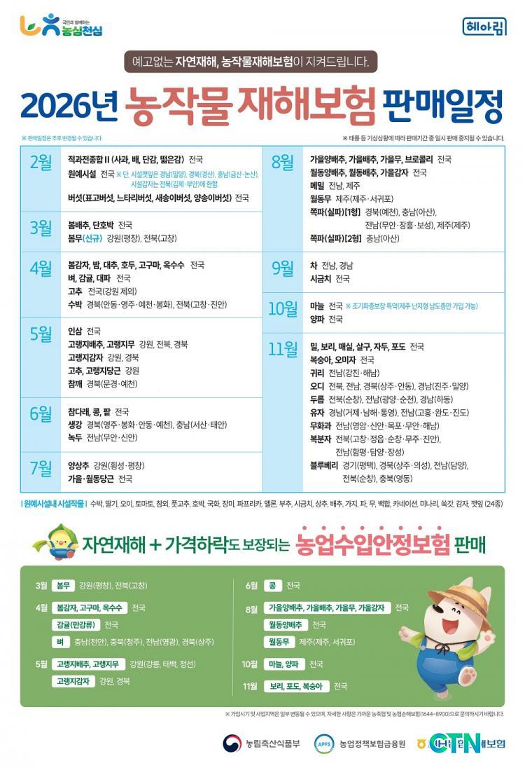³óÀÛ¹°ÀçÇØº¸ÇèÀº ÅÂdz, ÁýÁßÈ£¿ì, ¿ì¹Ú, ÀÌ»óÀú¿Â µî °¢Á¾ ÀÚ¿¬ÀçÇØ·Î ÀÎÇÑ ³óÀÛ¹° ¹× ³ó¾÷½Ã¼³ ÇÇÇØ¸¦ º¸»óÇÏ´Â Á¤Ã¥º¸ÇèÀ¸·Î, ³ó°¡ÀÇ ¼Òµæ°ú °æ¿µ ¾ÈÁ¤À» µµ¸ðÇϱâ À§ÇØ ½ÃÇàµÇ°í ÀÖ´Ù.