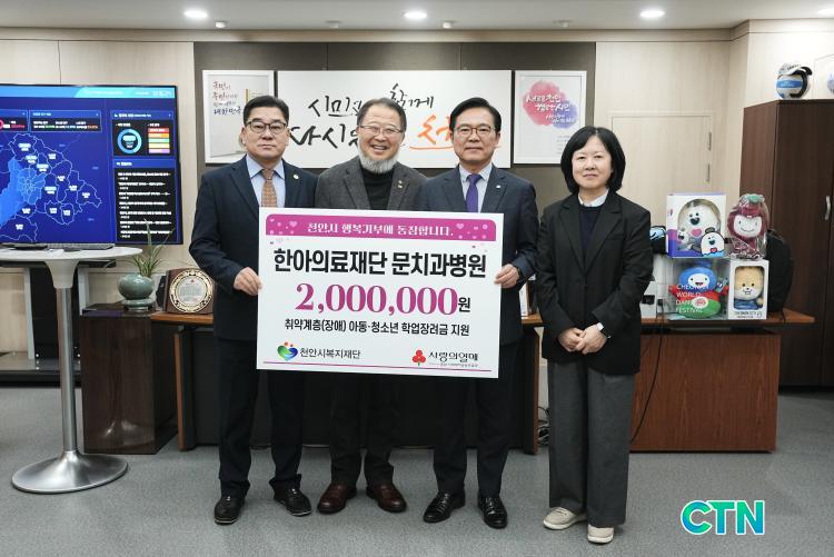 [õ¾È/CTN] °Çö¼ö ±âÀÚ = 20³â ³Ñ°Ô ¼Ò¿ÜµÈ ÀÌ¿ôÀ» À§ÇØ ÀμúÀ» ÆîÃĿ õ¾ÈÀÇ ÇÑ ÀÇ·á±â°üÀÌ À̹ø¿¡´Â Àå¾Ö ¾Æµ¿°ú û¼Ò³âµéÀÇ ²ÞÀ» ÀÀ¿øÇÏ°í ³ª¼¹´Ù. õ¾È½Ãº¹ÁöÀç´ÜÀº 9ÀÏ ÇѾÆÀÇ·áÀç´Ü ¹®Ä¡°úº´¿øÀÌ Àú¼Òµæ Àå¾Ö ¾Æµ¿¡¤Ã»¼Ò³âÀÇ ±³À° Áö¿øÀ» À§ÇØ ÈÄ¿ø±Ý 200¸¸ ¿øÀ» ±âŹÇß´Ù°í ¹àÇû´Ù.