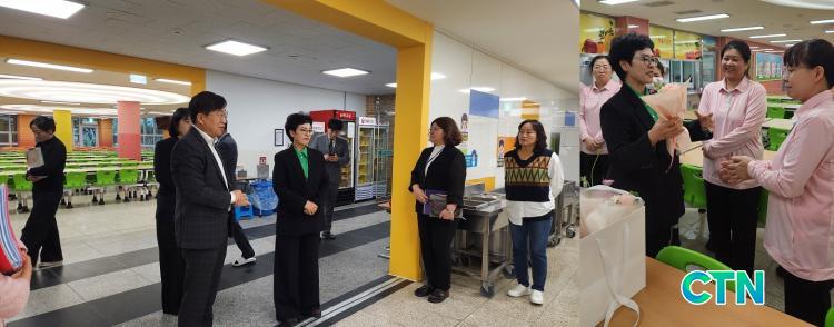 ¾Æ¿ï·¯ Çб³ ±³À°°úÁ¤À» µå·¯³ªÁö ¾ÊÁö¸¸, Á¶¸®ÇöÀå¿¡ ¹¬¹¬È÷ º»¿¬ÀÇ ¾÷¹«¸¦ Ãæ½ÇÈ÷ ¼öÇàÇÏ´Â ¿µ¾ç±³»ç, Á¶¸®»ç, Á¶¸®½Ç¹«»çµéÀ» À§·ÎÇϰí ÀÀ¿øÇϱâ À§ÇØ ²É´Ù¹ß·Î °¨»çÀÇ ¸¶À½µµ Àü´ÞÇß´Ù.