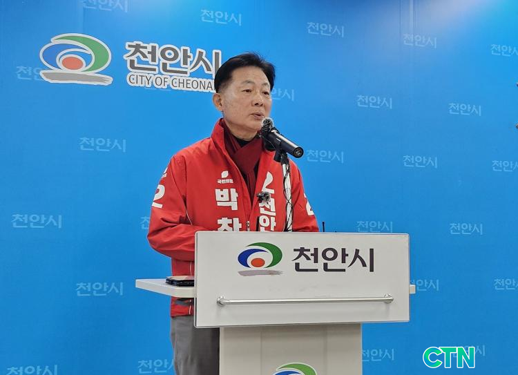 | ±¹¹ÎÀÇÈû ¹ÚÂù¿ì õ¾È½ÃÀå ¿¹ºñÈ帰¡ õ¾È½Ãû ºê¸®Çνǿ¡¼ °ø¾àÀ» ¹ßÇ¥Çϰí ÀÖ´Ù. |
