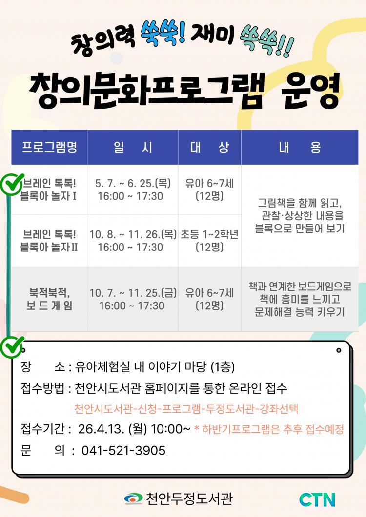 [õ¾È/CTN] °Çö¼ö ±âÀÚ = õ¾È½Ã µÎÁ¤µµ¼°üÀÌ ¾î¸°À̵éÀÇ Ã¢ÀǷ°ú »ç°í·ÂÀ» µ¿½Ã¿¡ Ű¿ï ¼ö ÀÖ´Â Çõ½ÅÀûÀÎ ¡®Ã¢Àǹ®È ÇÁ·Î±×·¥¡¯À» ´ÙÀ½ ´ÞºÎÅÍ º»°Ý ¿î¿µÇÑ´Ù°í 13ÀÏ ¹àÇû´Ù.