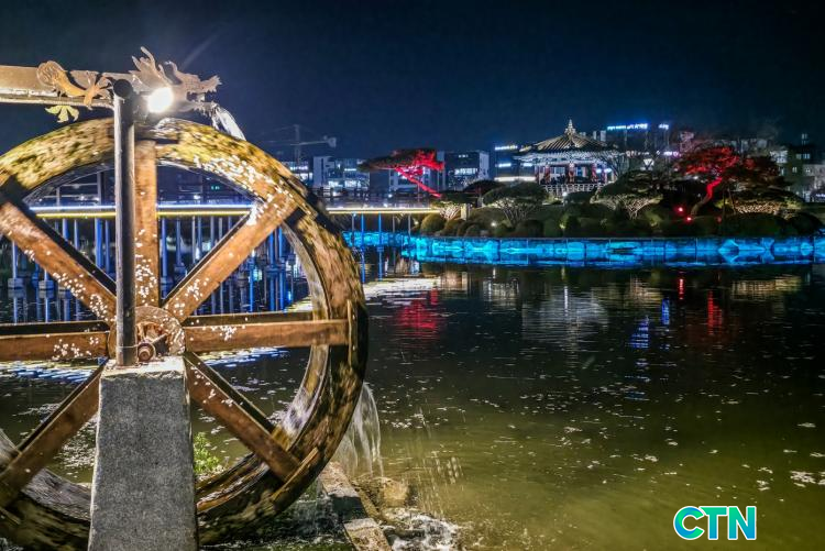 È£¼ö Áß¾Ó¿¡ À§Ä¡ÇÑ ÆÈ°¢Á¤ÀÎ '¼È£Á¤'Àº ÀºÀºÇÑ ºûÀ» ¹ßÇÏ¸ç ¼ö¸é À§·Î ¾Æ¸§´Ù¿î ¹Ý¿µÀ» µå¸®¿ü°í, È£¼ö¸¦ °¡·ÎÁö¸£´Â ¸ñ±³¿Í ÁÖº¯ »êÃ¥·Î´Â ¾ß°£ »êÃ¥À» Áñ±â·¯ ³ª¿Â ½Ã¹Îµé·Î Ȱ±â¸¦ ¶ì¾ú´Ù. ƯÈ÷ ¼öº¯À» µû¶ó ¼³Ä¡µÈ ºÓÀº ºûÀÇ Á¶¸íÀº ¸¸°³ÇÑ º¢²É°ú ´ëºñ¸¦ ÀÌ·ç¸ç ¸ùȯÀûÀÎ ºÐÀ§±â¸¦ ÀھƳ´Ù.