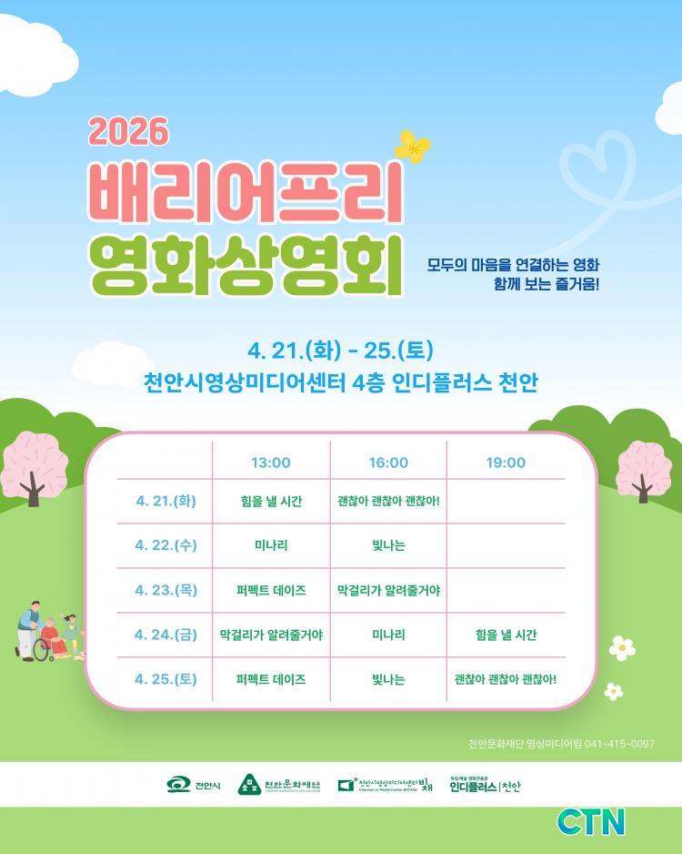 [õ¾È/CTN] °Çö¼ö ±âÀÚ = õ¾È¹®ÈÀç´ÜÀÌ Àå¾Ö¿Í ºñÀå¾ÖÀÇ °æ°è¸¦ ³Ñ¾î ¸ðµç ½Ã¹ÎÀÌ ÇÔ²² ¹®È¸¦ ÇâÀ¯ÇÒ ¼ö Àִ Ưº°ÇÑ ÀÚ¸®¸¦ ¸¶·ÃÇÑ´Ù. Àç´ÜÀº ¿À´Â 21ÀϺÎÅÍ 25ÀϱîÁö õ¾È½Ã¿µ»ó¹Ìµð¾î¼¾ÅÍ¿¡¼ ¹è¸®¾îÇÁ¸® ¿µÈ »ó¿µÈ¸¸¦ ¿î¿µÇÑ´Ù°í 14ÀÏ ¹àÇû´Ù.
