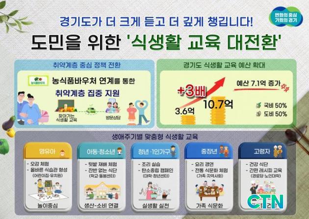 °æ±âµµ°¡ µµ¹ÎµéÀÇ ¿Ã¹Ù¸¥ ½Ä½À°ü Çü¼ºÀ» µ½±â À§ÇØ ¿ÃÇØ ½Ä»ýȰ ±³À° ¿¹»êÀ» Àü³â ´ëºñ 3¹è °¡±îÀÌ ´Ã¾î³­ 10¾ï 7,000¸¸ ¿øÀ¸·Î ÆÄ°Ý Æí¼ºÇß´Ù. 1~2ÀÎ °¡±¸ Áõ°¡¿Í °£Æí½Ä ¼Òºñ È®»êÀ¸·Î ÀÎÇÑ Ãë¾à°èÃþÀÇ ¿µ¾ç ºÒ±ÕÇü ¹®Á¦¸¦ ÇØ°áÇϱâ À§ÇØ '½Ä»ýȰ ¾ÈÀü¸Á' °­È­¿¡ ³ª¼± °ÍÀÌ´Ù.