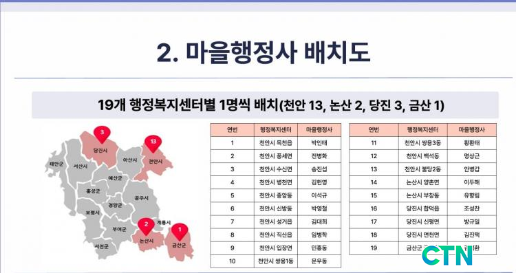 ÃæÃ»³²µµ´Â 14ÀÏ(È) ¿ÀÈÄ 2½Ã µµÃ» ÁßȸÀǽǿ¡¼ È«Á¾¿Ï ÇàÁ¤ºÎÁö»ç¿Í °ü°èÀÚµéÀÌ Âü¼®ÇÑ °¡¿îµ¥ ¡®¸¶À»ÇàÁ¤»ç À§Ã˽ġ¯À» °³ÃÖÇÏ°í º»°ÝÀûÀΠȰµ¿ÀÇ ½ÃÀÛÀ» ¾Ë·È´Ù. À̹ø¿¡ À§ÃËµÈ 19¸íÀÇ ¸¶À»ÇàÁ¤»ç´Â ¿À´Â 5¿ùºÎÅÍ Ãµ¾È, ³í»ê, ´çÁø, ±Ý»ê µîÁö¿¡¼ Ȱµ¿Çϸç ÇàÁ¤»ç ¼öÀÓÀÌ ¾î·Á¿î µµ¹ÎµéÀ» ´ë»óÀ¸·Î ¹«·á »ó´ã ¼ºñ½º¸¦ Á¦°øÇÒ ¿¹Á¤ÀÌ´Ù.