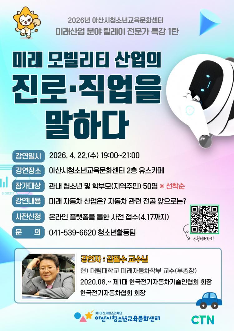 [¾Æ»ê/CTN] Á¶¼ºÂù±âÀÚ = (Àç)¾Æ»ê½Ãû¼Ò³âÀç´Ü ¾Æ»ê½Ãû¼Ò³â±³À°¹®È¼¾ÅͰ¡ ¿À´Â 4¿ù 22ÀÏ(¼ö) Àú³á 7½Ã, ¼¾ÅÍ 2Ãþ À¯½ºÄ«Æä¿¡¼ ¡®2026³â ¹Ì·¡»ê¾÷ ºÐ¾ß ¸±·¹ÀÌ Àü¹®°¡ Ư° 1ꡝÀ» °³ÃÖÇÑ´Ù.