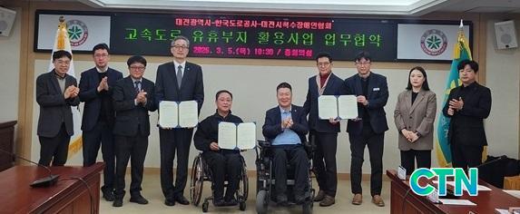 3¿ù 5ÀÏ, ¿ÞÂʺÎÅÍ ³×¹øÂ°ºÎÅÍ À¯µæ¿ø ´ëÀü½Ã ÇàÁ¤ºÎ½ÃÀå, ³²¼º¿ì ´ëÀü±¤¿ª½Ã ô¼öÀå¾ÖÀÎÇùȸÀå, Ȳ°æ¾Æ ´ëÀü½ÃÀÇȸ ºÎÀÇÀå, ÇÑÁ¤¹Î Çѱ¹µµ·Î°ø»ç ´ëÀüÃæ³²º»ºÎ °ü¸®Ã³ÀåÀÌ Çù¾àü°á ÈÄ ±â³äÃÔ¿µÀ» Çϰí ÀÖ´Ù. ¨Ï»çÁøÁ¦°ø/Çѱ¹µµ·Î°ø»ç ´ëÀüÃæ³²º»ºÎ