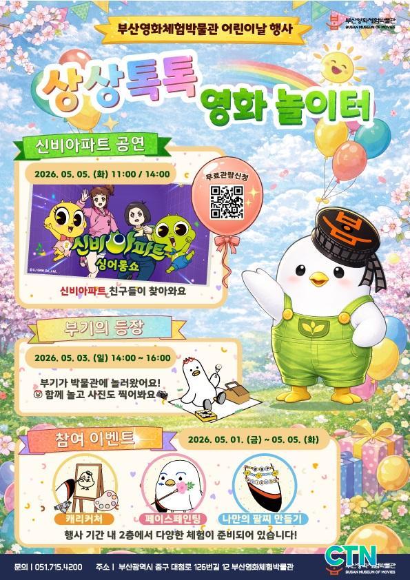 [ºÎ»ê/CTN]°¡±ÝÇö ±âÀÚ= ºÎ»ê½Ã´Â ¿À´Â 5¿ù 1ÀϺÎÅÍ 5ÀϱîÁö ´å»õ°£ Áß±¸ ¼ÒÀç ºÎ»ê¿µÈüÇè¹Ú¹°°ü¿¡¼ ¾î¸°À̳¯ ±â³ä Ưº° Çà»ç '»ó»óÅåÅå ¿µÈ ³îÀÌÅÍ : ´Ù °°ÀÌ ³îÀÚ!'¸¦ °³ÃÖÇÑ´Ù°í ¹àÇû´Ù.