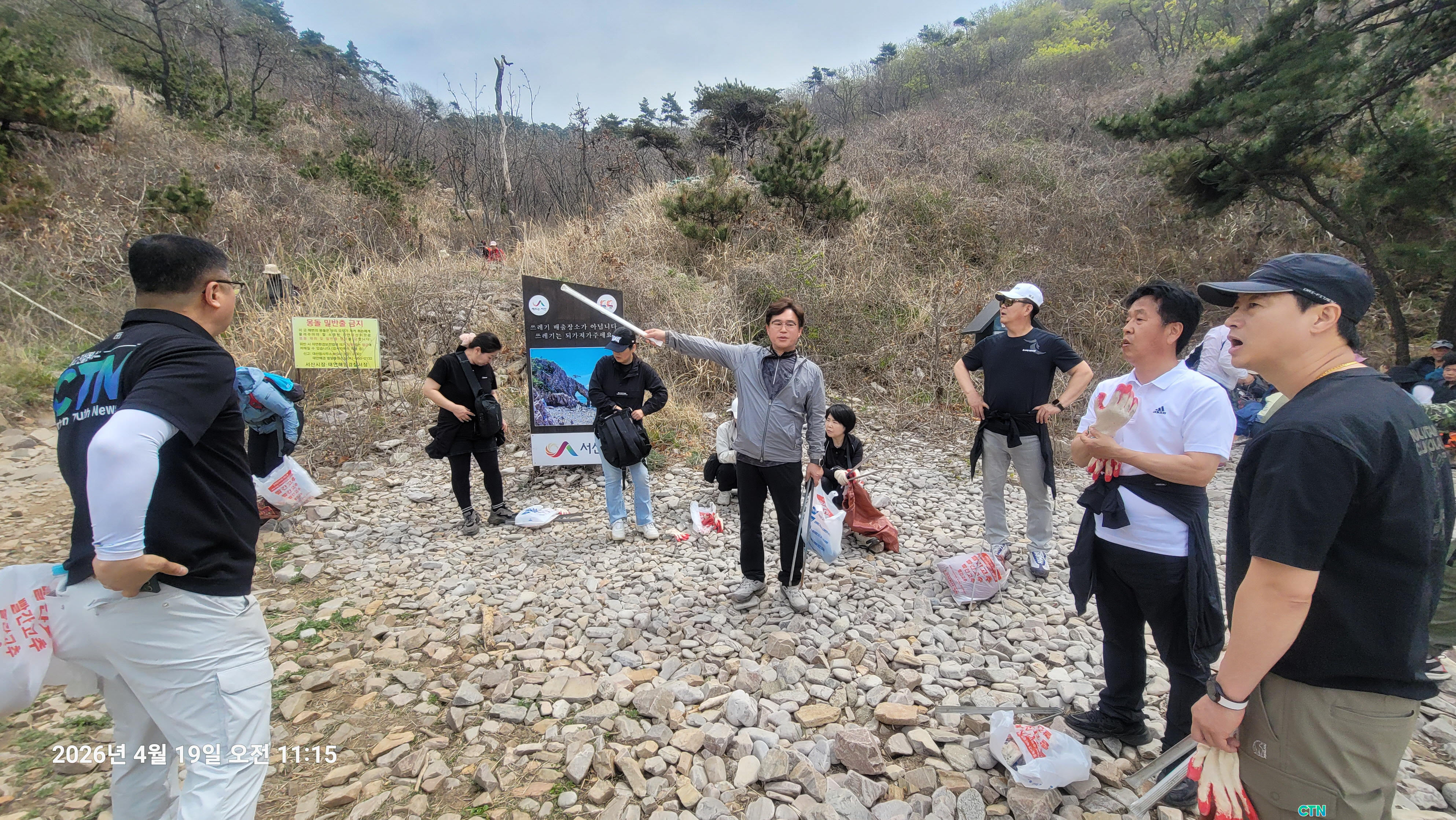 Áý°Ô¿Í ¾²·¹±âºÀÅõ·Î ¹«ÀåÇÑ 20¿© ¸íÀÇ Âü°¡ÀÚµéÀº ÇèÇÑ ¸ùµ¹Çغ¯À» µû¶ó À̵¿ÇÏ¸ç ±¸¼®±¸¼® ½×ÀÎ ÇØ¾ç¾²·¹±â ¼ö°Å¿¡ ³ª¼¹´Ù.
