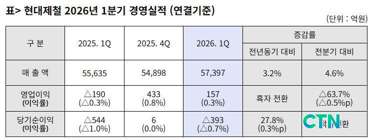 Çö´ëÁ¦Ã¶Àº 24ÀÏ °ø½Ã¸¦ ÅëÇØ 2026³â 1ºÐ±â ¿¬°á±âÁØ ¸ÅÃâ¾× 5Á¶ 7,397¾ï¿ø, ¿µ¾÷ÀÌÀÍ 157¾ï¿øÀ» ´Þ¼ºÇß´Ù°í ¹àÇû´Ù.