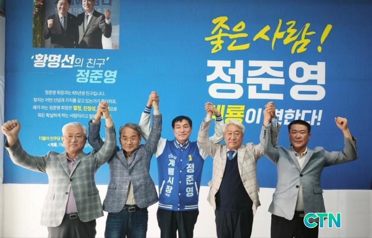 [°è·æ/CTN[]Á¤¹ÎÁØ ±âÀÚ¤Ó´õºÒ¾î¹ÎÁÖ´ç °è·æ½ÃÀå °æ¼± °æÀïÀÚµéÀÌ Á¤ÁØ¿µ Èĺ¸¿¡ ´ëÇÑ °ø½Ä ÁöÁö¸¦ ¼±¾ðÇÏ¸ç º»¼± ½Â¸®¸¦ À§ÇÑ ¡®¿øÆÀ üÁ¦¡¯ ±¸Ãà¿¡ ³ª¼¹´Ù.