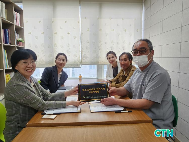 ¹ÚÁÖ¿µ õ¾È½Ãû¼Ò³â»ó´ãº¹Áö¼¾ÅÍÀå°ú ¸¶À½¾Öº´¿ø °ü°èÀÚ°¡ 28ÀÏ À§±âû¼Ò³â Áö¿ø °È¸¦ À§ÇÑ ¾÷¹«Çù¾àÀ» ü°áÇÑ µÚ ±â³äÃÔ¿µÀ» Çϰí ÀÖ´Ù.