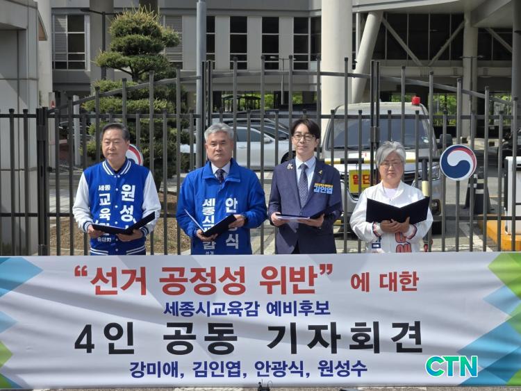 [¼¼Á¾/CTN]Á¤¹ÎÁØ ±âÀÚ¤Ó°¹Ì¾Ö ¿¹ºñÈĺ¸ÀÚ°¡ 29ÀÏ ±³À°ºÎ ¾Õ¿¡¼ ¼¼Á¾½Ã ±³À°°¨ ¼±°Å ¿¹ºñÈĺ¸ 4ÀÎ °øµ¿ ±Ôź ¼º¸í ¹ßÇ¥ ±âÀÚȸ°ßÀ» ¿°í, ÃÖ±Ù ºÒ°ÅÁø ¼±°Å °ü·Ã ³í¶õ¿¡ ´ëÇØ °µµ ³ôÀº ºñÆÇ°ú ÇÔ²² °ø½Ä ÀÔÀåÀ» ¹àÇû´Ù.